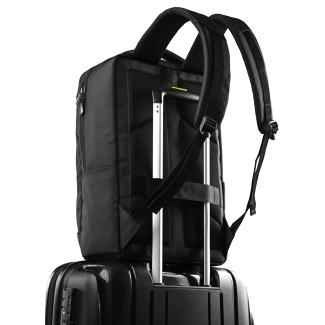 The back of the backpack has a built-in belt that attaches to the suitcase puller, very convenient for business trips