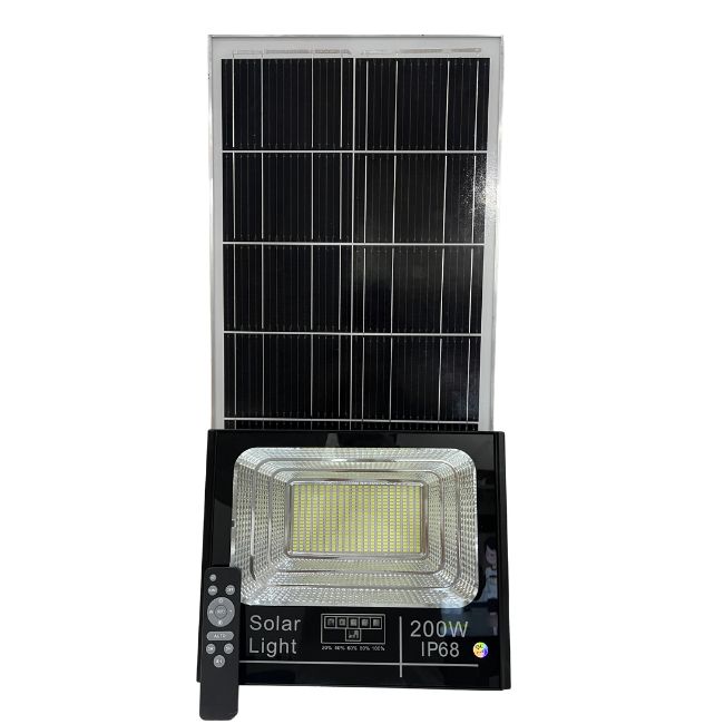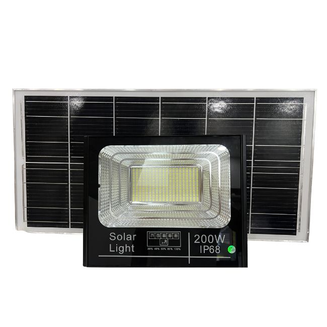 Đèn năng lượng mặt trời 200W điều khiển từ xa Tấm pin năng lượng mặt trờiTấm pin polysilicon 30W có kích thước 580 * 350 * 17mm. Đây là bộ phận không thể thiếu của tất cả các loại đèn năng lượt mặt trời hiện nay. Vai trò của chúng là hấp thụ ánh nắng mặt trời và chuyển hóa thành nguồn điện dự trữ trong pin, dùng để thắp sáng cho chiếc đèn led nối liền với nó. Tâm pin polysilicon này có tuổi thọ cao và khả năng hấp thụ cực tốt Pin sạc dự trữĐèn led năng lượng mặt trời 200W sử dụng pin dự trữ Lithium ion Lifepo4 - 3.2V /25000MAH. Bộ phận này có chức năng chính là dự trữ nguồn điện đã được pin năng lượng mặt trời hấp thụ nhiệt và chuyển hóa vào ban ngày. Lượng pin dự trữ này sẽ được sử dụng để thắp sáng đèn led vào ban đêm. 3. Ưu điểm của đèn led năng lượng mặt trời 200WLà thiết bị có công suất vừa phải nên rất được ưa dùng ở hầu hết mọi công trình cần chiếu sáng ban đêm hiện nay. Thiết này này được đánh giá cao bởi những ưu điểm: Đèn có tuổi thọ caoVới cấu tạo chắc chắn, được thiết kế dựa trên nghiên cứu về khả năng chống chịu khí hậu ở Việt Nam, sản phẩm này có thể thích nghi tốt với mọi kiểu thời tiết. Chất liệu đèn cao cấp giúp tăng tuổi thọ sử dụng của đèn hơn rất nhiều. Với khoảng 5000 giờ chiếu sáng, thiết bị này được đánh giá cao về tuổi thọ sản phẩm. Đèn led năng lượng mặt trời có tuổi thọ cao Khả năng chống nước tốtĐèn led năng lượng mặt trời 200w có chỉ số kín nước là IP67. Đây là chỉ số chống nước cực cao với ý nghĩa, thiết bị có khả năng chống nước tuyệt đối. Do vậy, chúng được dùng để lắp đặt ở ngoài trời mà không lo sợ sự phá hoại của thời tiết, giông bão. Đèn có thể chống nước hắt từ nhiều phía, khung đèn và mặt đèn siêu chắc, chống chịu va đập cực tốt. Thiết bị dù có bị ngâm trong nước nhiều giờ cũng không vấn đề gì. Pin có tuổi thọ caoPin là yếu tố vô cùng quan trọng quyết định đến tuổi thọ của đèn led năng lượng mặt trời. Theo đó, để tăng tuổi thọ đèn, sản phẩm được ưu tiên sử dụng loại pin công nghệ Lithium phosphate chống chai. Pin có thể nạp và xả liên tục mà không bị chai, giúp kéo dài tuổi thọ pin ít nhất từ 3 đến 5 năm.