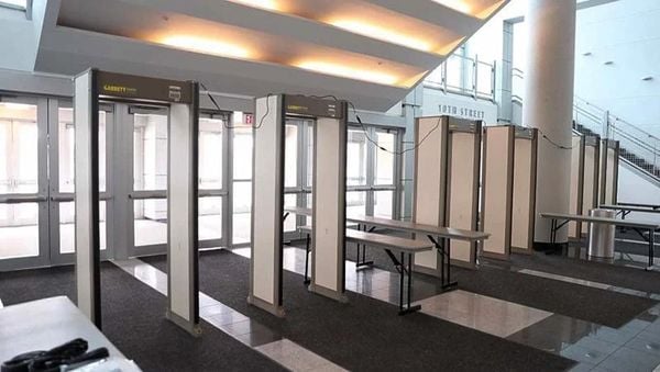 Mình từng đi theo một đội bảo vệ setup cho sự kiện âm nhạc ngoài trời – nơi có gần 3.000 người tham gia. Trước cổng vào, họ dựng 4 cổng từ, bố trí 2 bảo vệ mỗi bên. Ai đi qua cũng phải để túi ra khay, rồi đi qua cổng từ. Nếu có âm thanh báo động, bảo vệ sẽ lịch sự kiểm tra thêm bằng máy dò cầm tay.