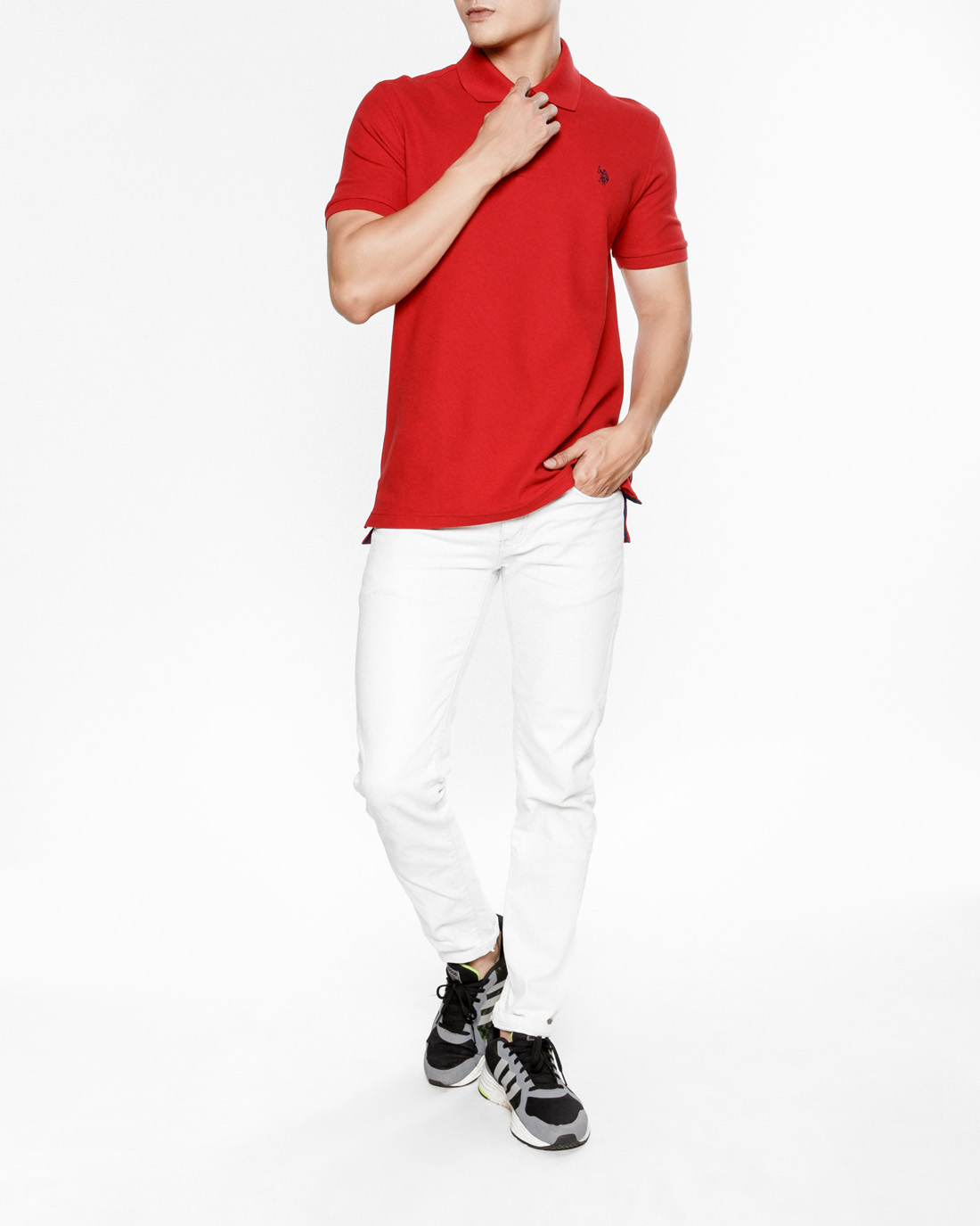 • Áo Polo màu đỏ tay ngắn logo nhỏ