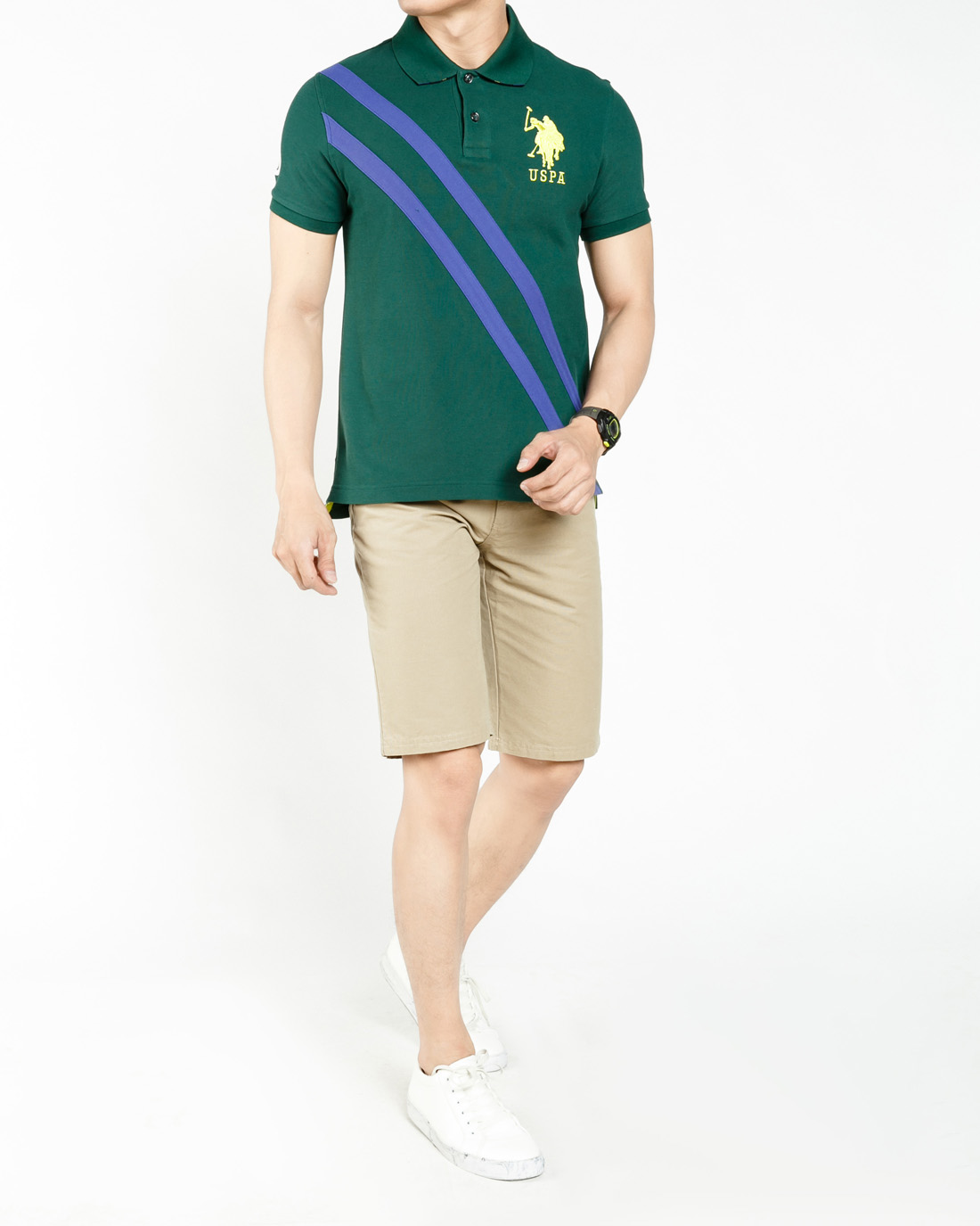 Mô tả sản phẩm: Áo thun Polo xanh rêu phối sọc chéo thiết kế đơn giản, sang trọng, dễ kết hợp cùng các loại trang phục khác.