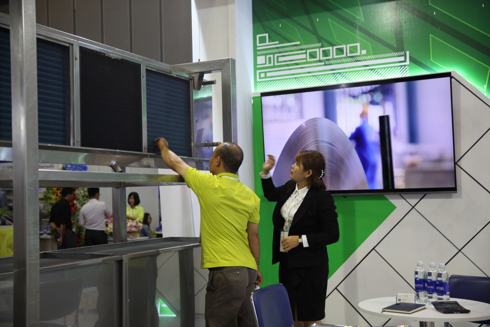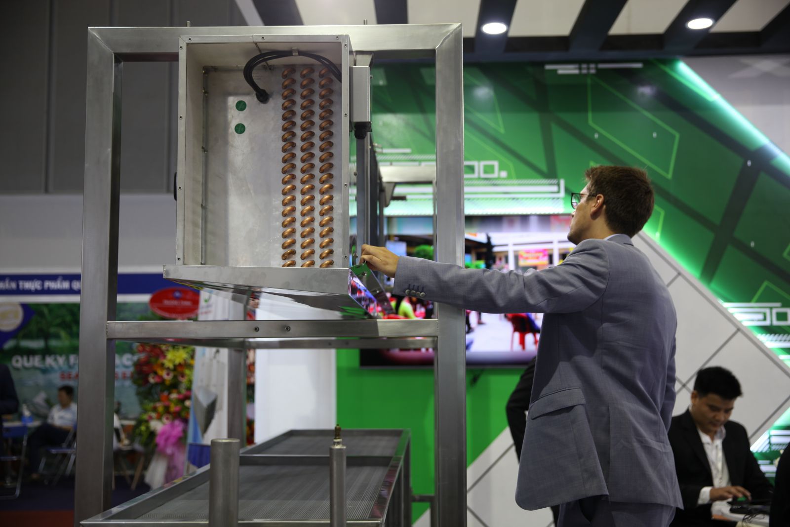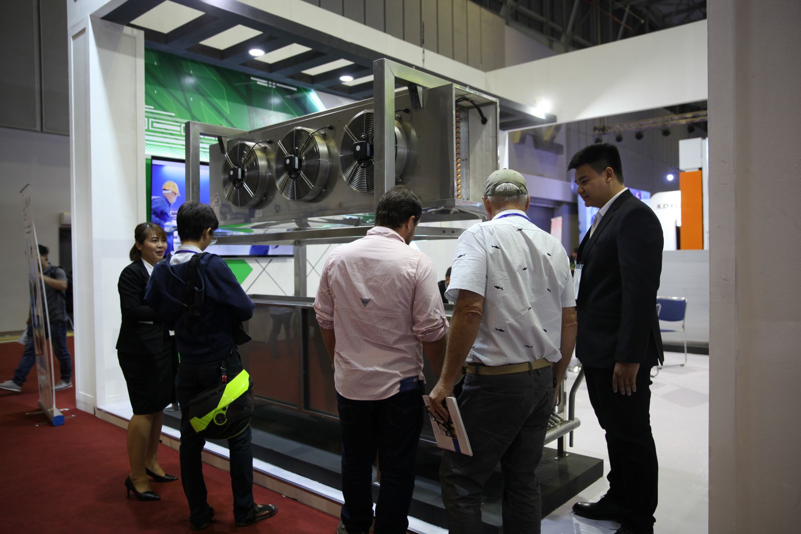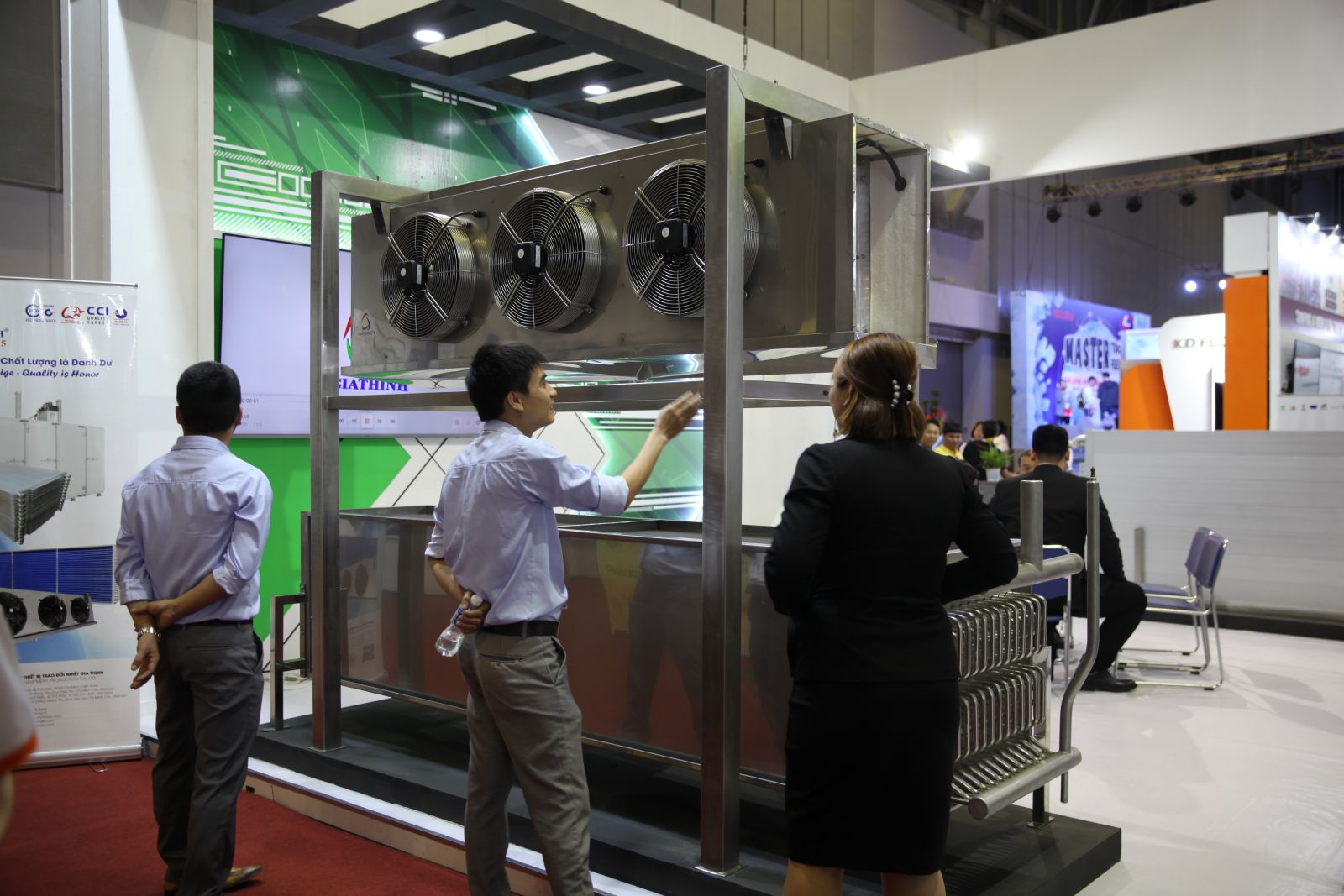 Đến với Vietfish 2019, với mong muốn mang các sản phẩm đến gần hơn với Quý Khách Hàng, công ty Gia Thịnh đã trưng bày một số sản phẩm tiêu biểu như: tấm tản nhiệt dùng trong tủ đông tiếp xúc, dàn lạnh FCU, dàn coil ống inox dùng trong băng chuyền cấp đông nhanh IQF và đặc biệt hơn đó là dàn sử dụng cánh inox 304.
