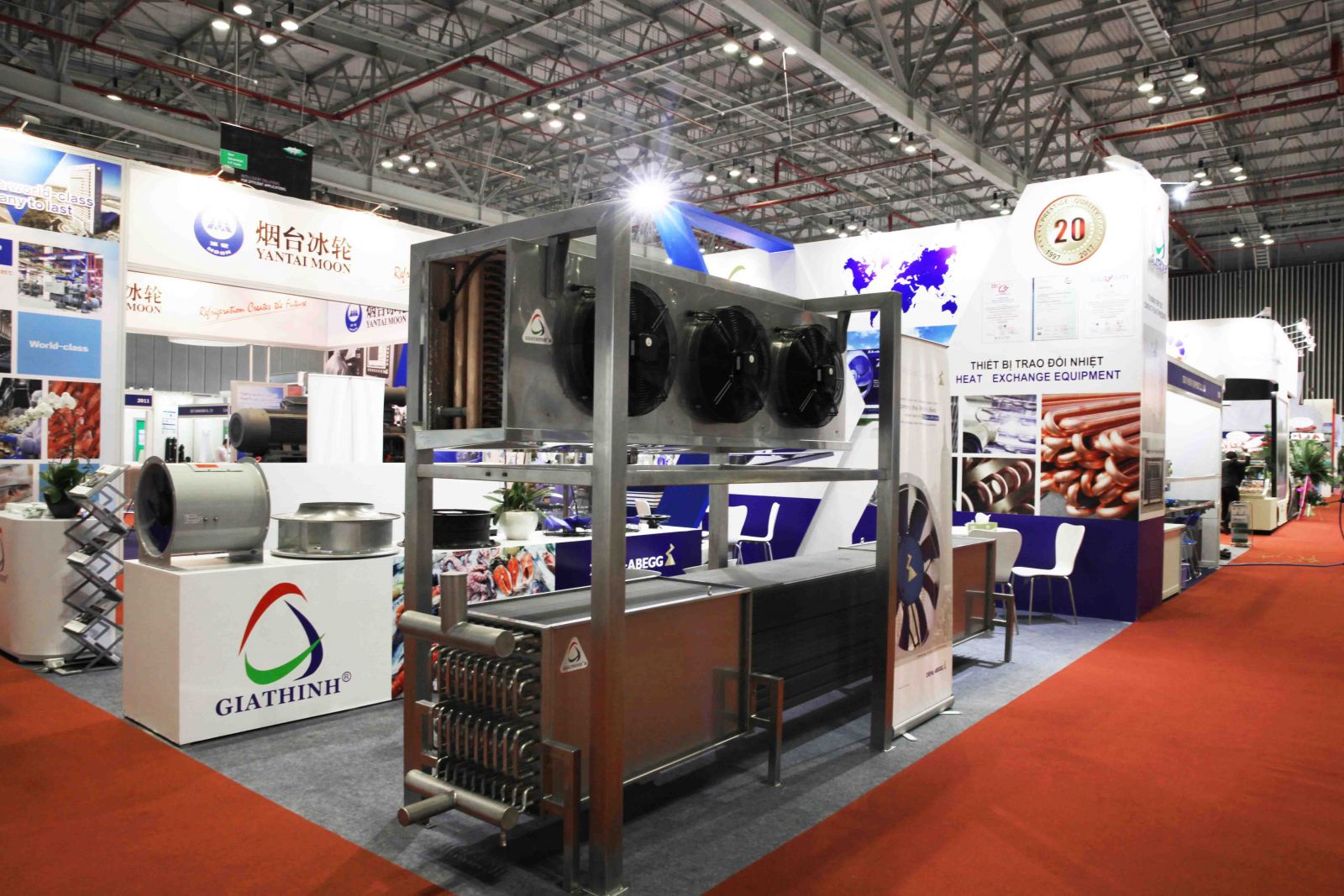 Nhằm mang sản phẩm đến gần hơn với quý khách hàng. Công ty Gia Thịnh đã trưng bày những sản phẩm như: tấm tản nhiệt dùng trong tủ đông tiếp xúc, dàn coil ống inox dùng trong băng chuyền cấp đông nhanh IQF, dàn lạnh FCU tại gian hàng trong hội chợ Vietfish.