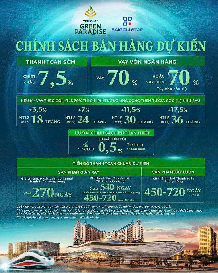 Giá trị xây dựng: Bắt đầu thanh toán sau 540 ngày (≈ 18 tháng) kể từ thời điểm mua, và kéo dài trong 450 – 720 ngày, tùy khu.