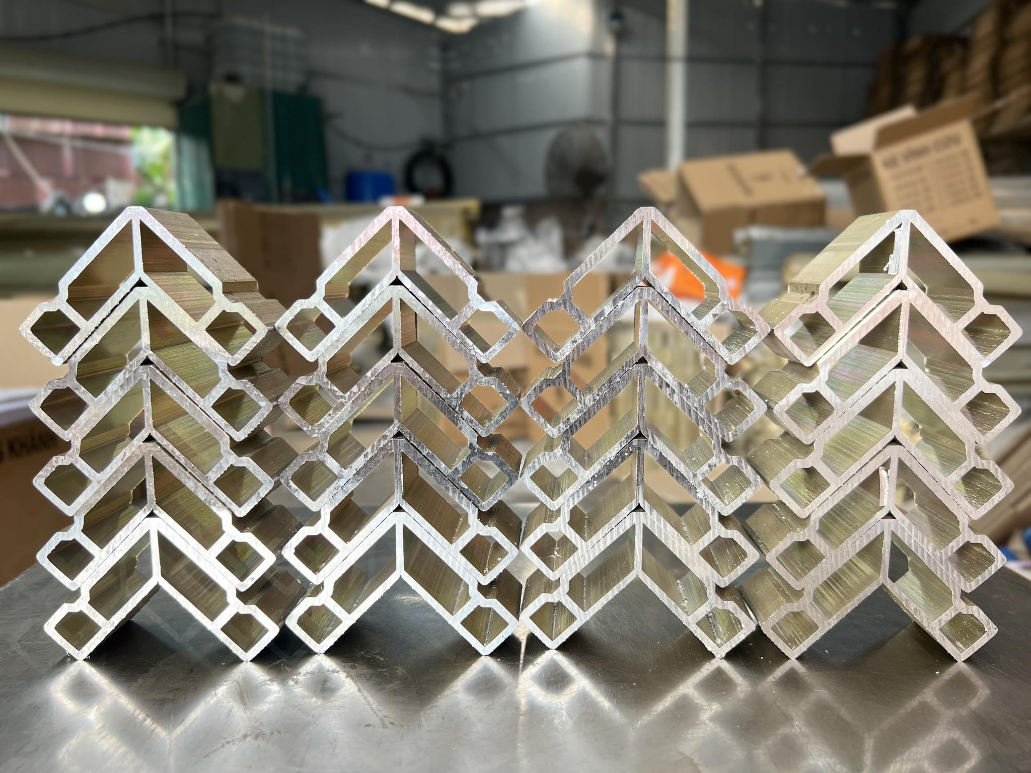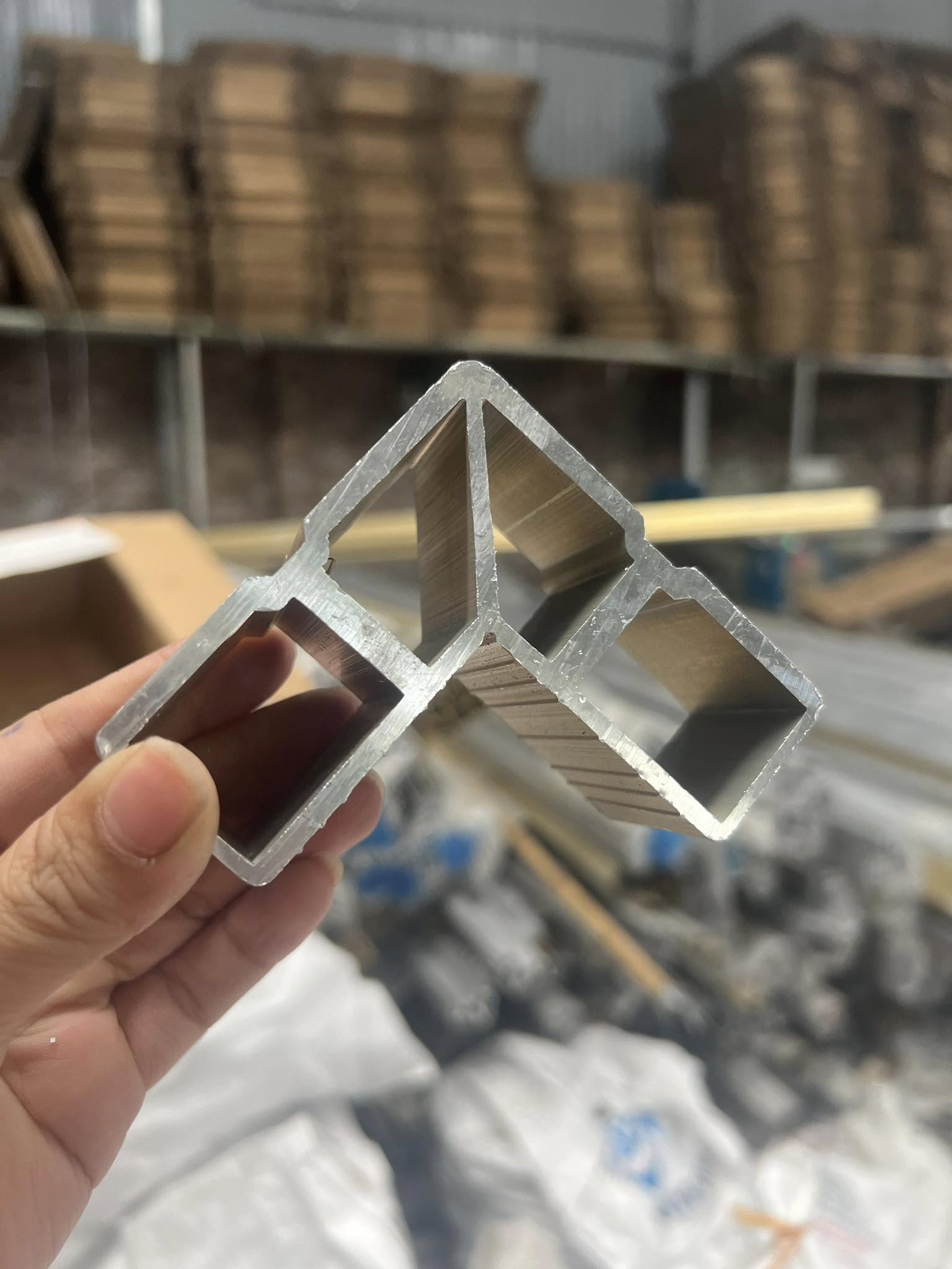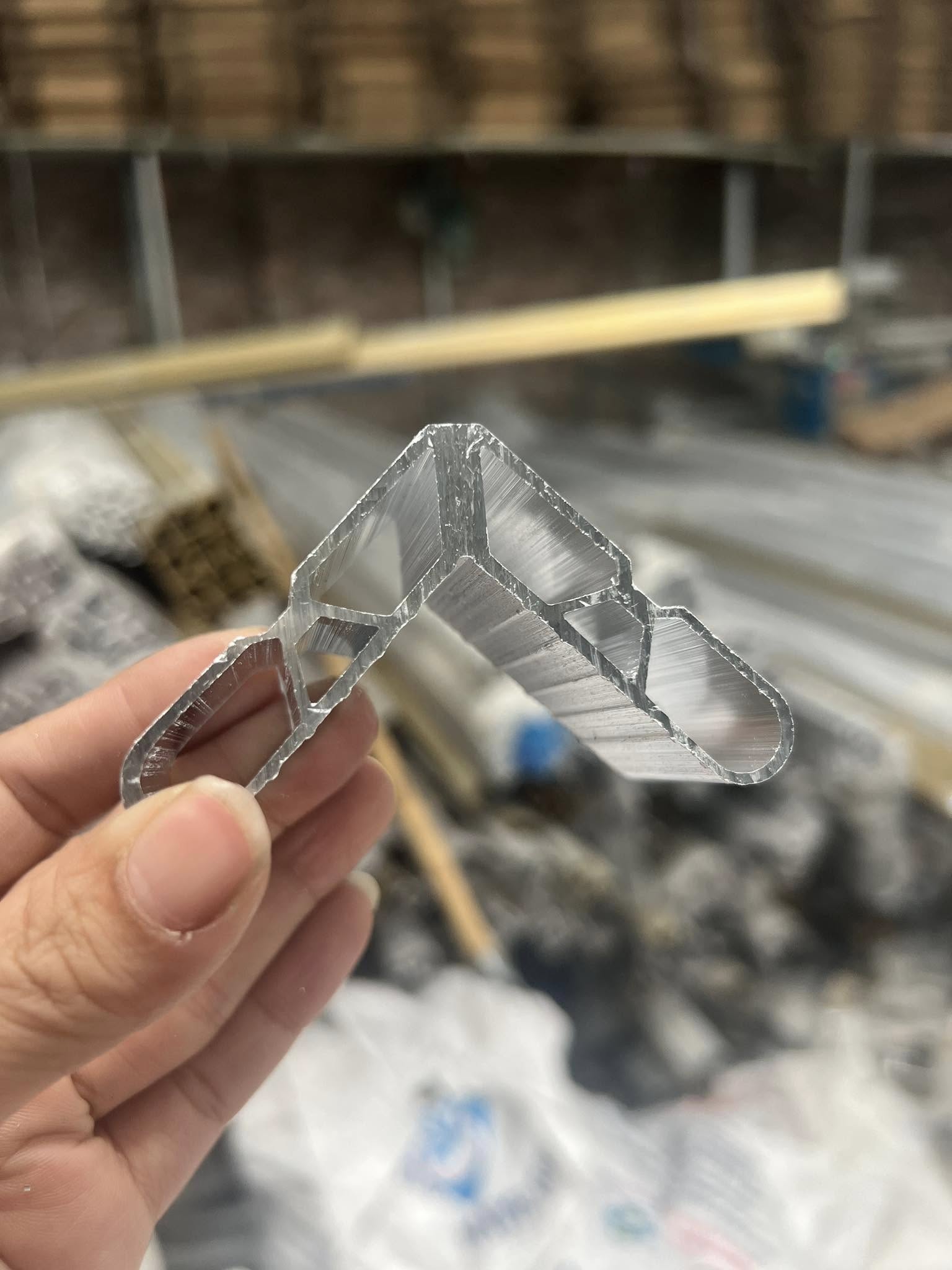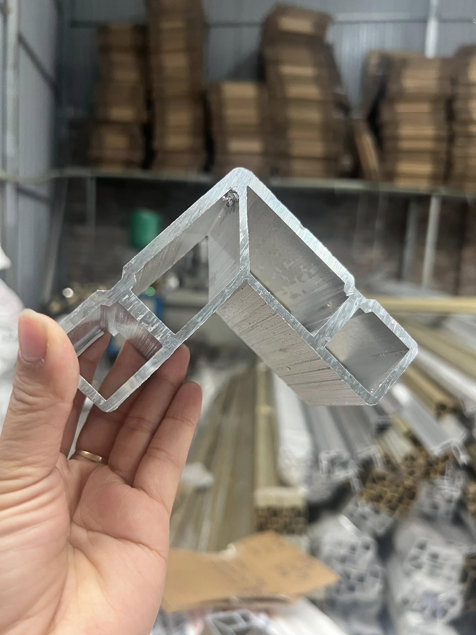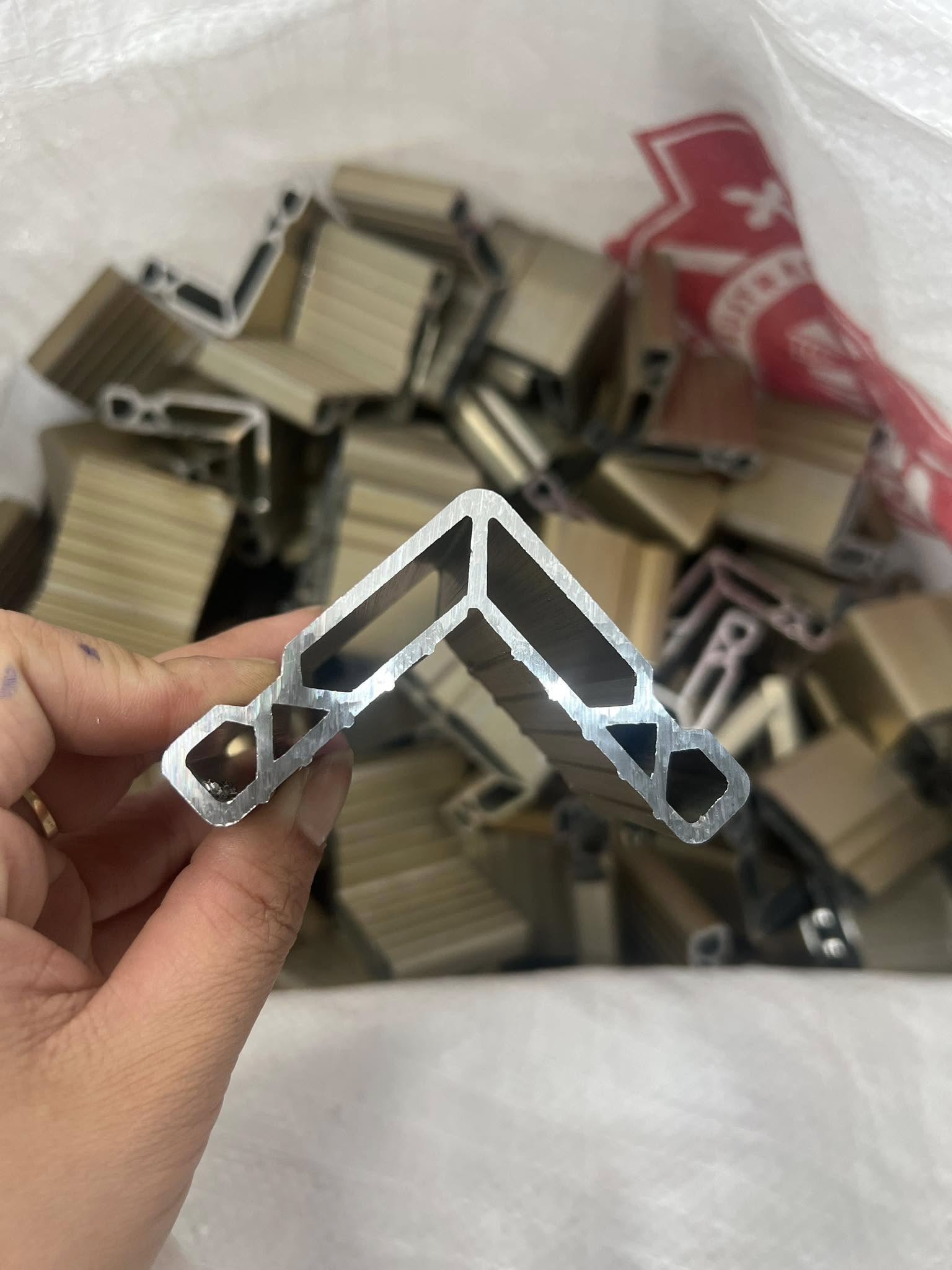 Ke ép góc là chi tiết nhôm đúc liền khối, được lắp vào bên trong thanh nhôm và ép bằng máy thủy lực chuyên dụng để tạo mối nối góc liền – kín – sắc nét cho khung cửa.