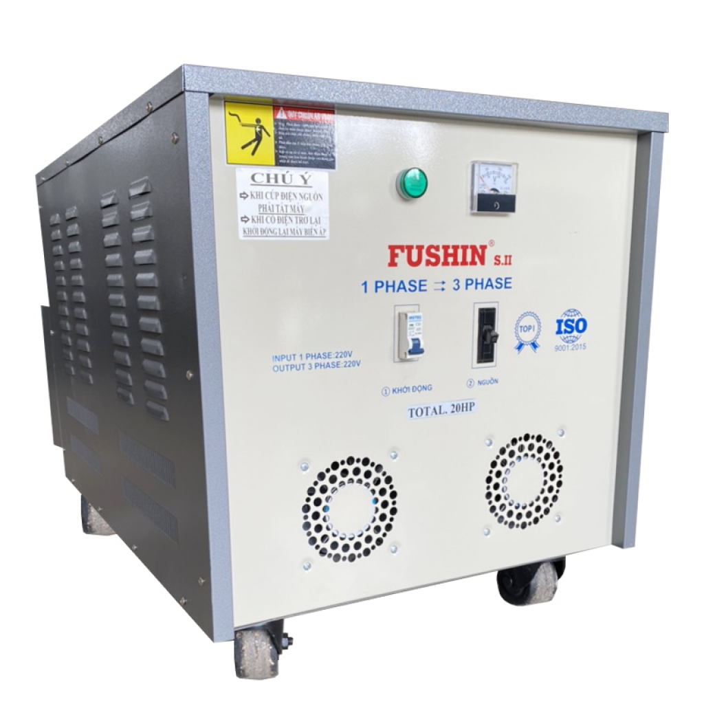 Máy biến áp 1 pha 220V chuyển dòng điện 1 pha thành 3 pha 220V chuẩn theo biểu đồ sóng Sin, thích hơp sử dụng cho các thiết bị sử dụng điện 3 pha: