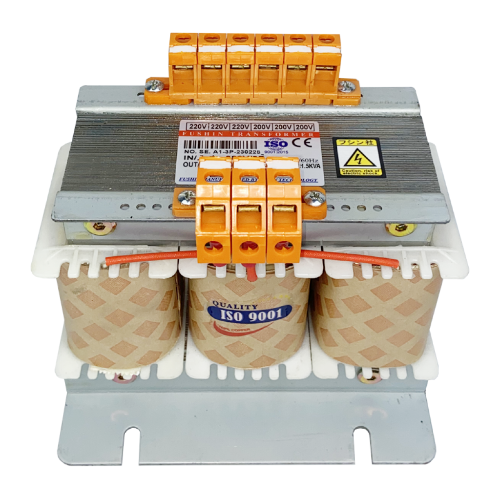 - Biến áp 3 pha Fushin có kiểu dáng công nghiệp tiêu chuẩn. Nhỏ gọn với các khe chốt kết nối, tương thích với hầu hết các loại máy và tủ điều khiển trên thị trường.