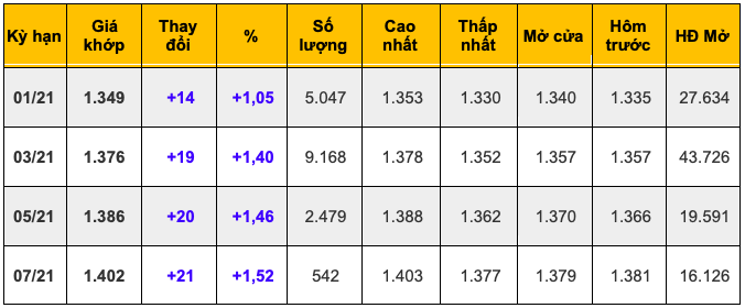 Hôm nay (15/12/2020) giá cà phê tại thị trường Việt Nam và giá cà phê thế giới trên sàn London và New York (ngày 14/12) đều tiếp tục tăng. Giá cà phê Robusta trên sàn London kỳ hạn 01/21 tăng thêm 14 USD/tấn, hay +1,05%, lên mức 1.349 USD/tấn, các kỳ hạn khác cũng tăng 19 - 21 USD/tấn. Giá cà phê arabica trên sàn New York kỳ hạn 12/20 tăng mạnh 4,45 cent/lb, hay +4,74%, lên mức 123,55 cent/lb, các kỳ hạn khác cũng tăng mạnh 4,50 - 4,55 cent/lb. Sáng nay, giá cà phê tại khu vực Tây Nguyên tiếp tục tăng thêm 300 ngàn đồng/tấn, lên mức 32,3 - 32,7 triệu đồng/tấn.