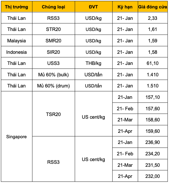 Giá cao su đóng cửa tại châu Á ngày 17/12/2020