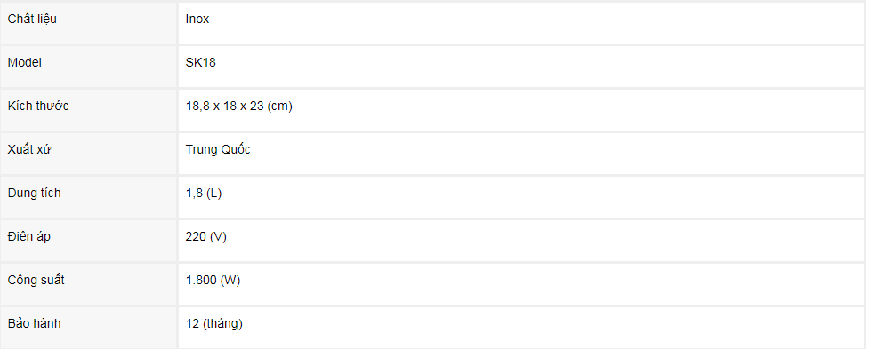 - Ấm đun siêu tốc Alaska SK18 được làm từ chất liệu inox có độ bền cao, không tương tác hóa học với nước uống trong quá trình sử dụng, đảm bảo an toàn cho sức khỏe người dùng.