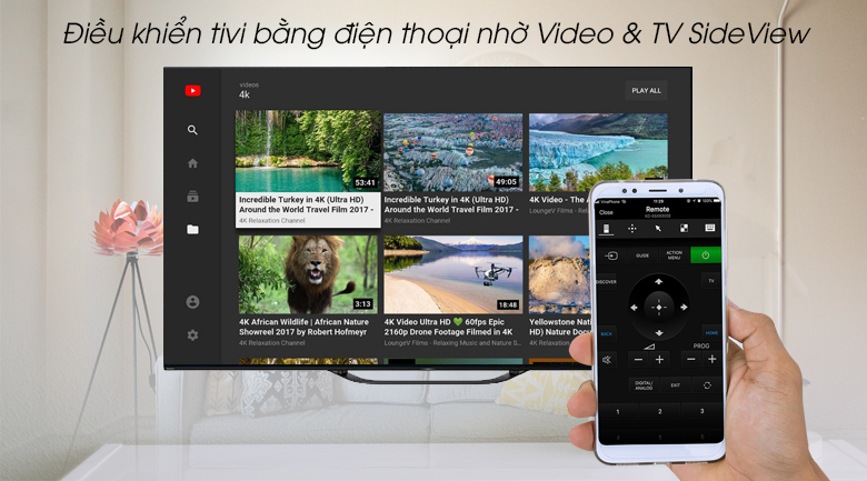 | Điều khiển tivi bằng điện thoại | Bằng ứng dụng Video & TV SideView |