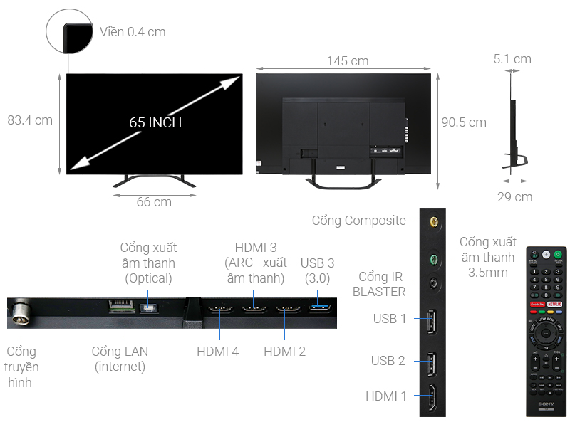 | Công nghệ xử lý hình ảnh | Dual Database Processing, Dolby Vision, Super Bit Mapping 4K HDR, Công nghệ màn hình OLED, Live Colour, Precision Colour Mapping, 4K X-Reality PRO, Dynamic Contrast Enhancer, TRILUMINOS Display, 4K HDR X1 Extreme |