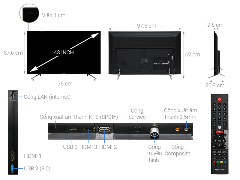 Thông số kỹ thuật chi tiết Android Tivi Panasonic 4K 43 inch 43FX550V