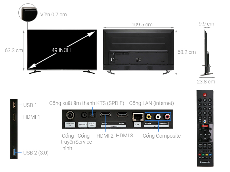 Kích thước màn hình 49 inch vừa phải giúp bạn bố trí đặt tivi trên bàn ở phòng khách hay treo tường trên phòng ngủ đều phù hợp.