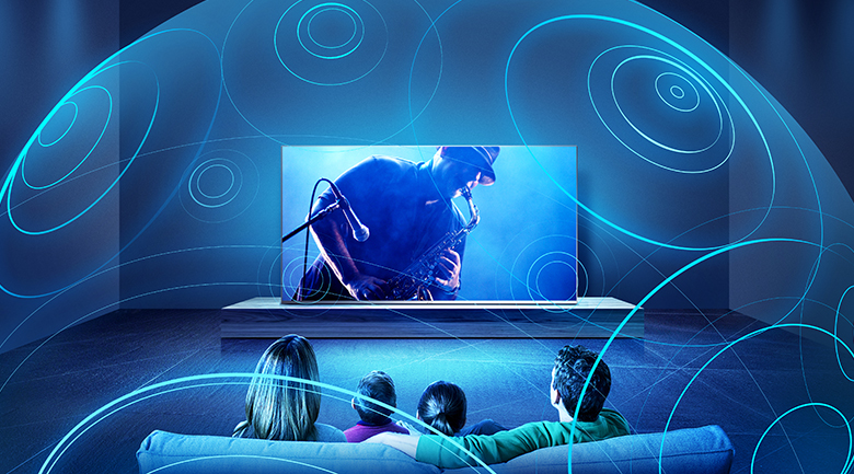 Android tivi sở hữu công nghệ âm thanh Dolby Atmos có khả năng phát ra mọi âm thanh của từng vật thể trong cùng một cảnh tại một thời điểm, không gian âm thanh bao phủ cho hiệu ứng âm thanh ba chiều, đem đến những trải nghiệm âm thanh điện ảnh tại nhà thật tuyệt vời.