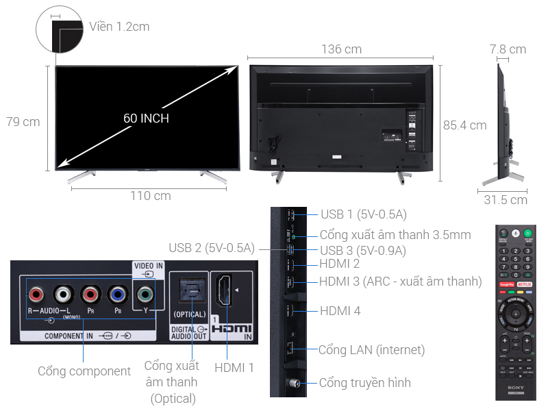 Thông số kỹ thuật chi tiết Android Tivi Sony 4K 60 inch KD-60X8300F