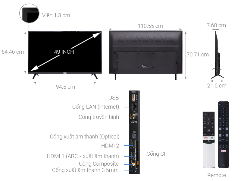 Thông số kỹ thuật chi tiết Android Tivi TCL 49 inch L49S6500