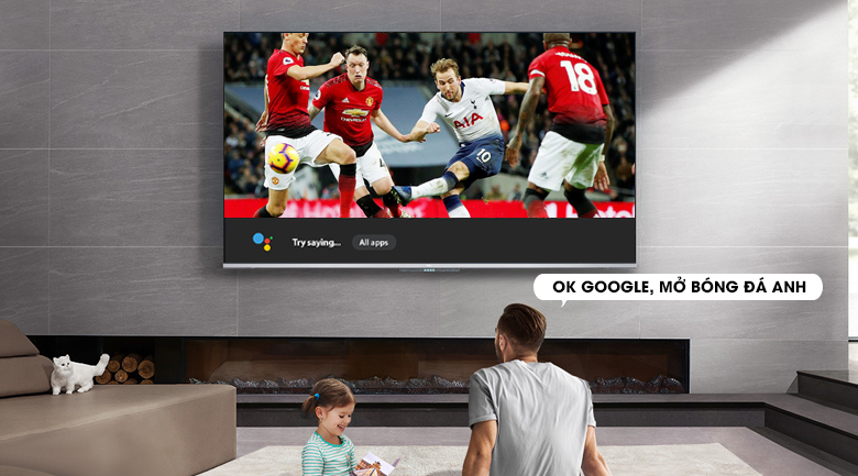 Android Tivi trang bị 4 micro thu giọng nói trên tivi kết hợp với trợ lý ảo Google Assistant giúp bạn điều khiển, tìm kiếm thông tin bằng giọng nói dễ dàng, không cần sử dụng remote. Lưu ý, để điều khiển tivi với tiện ích này, bạn cần bắt đầu câu lệnh với “Hey Google” hoặc “Ok Google”.