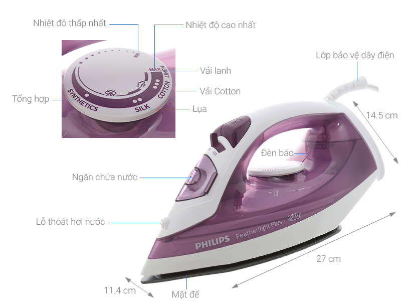 Mặt đế chống dính có độ bền cao, trượt êm ái trên mọi loại vải, làm sạch đơn giản khi bị bám bẩn