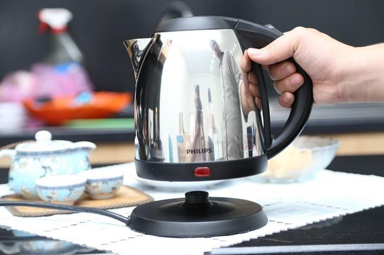 Bình đun siêu tốc Philips HD9303 có kiểu dáng gọn nhẹ, không chiếm nhiều diện tích trong gian bếp. Tay cầm bằng nhựa ôm sát thân bình, cầm nắm thuận tay, cách nhiệt tốt, chống bỏng hiệu quả.