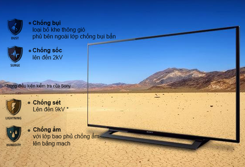Tính năng này sẽ giúp tivi Sony hạn chế ảnh hưởng của bụi bẩn, sấm sét, sốc điện, độ ẩm.