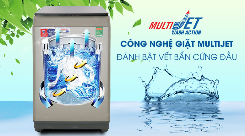Công nghệ giặt nhiều luồng nước phun MultiJet trên máy giặt AQUA AQW-U91CT N sẽ mang đến nhiều luồng nước phun mạnh mẽ, hòa tan bột giặt tốt hơn. Giờ đây quần áo không chỉ nhanh chóng được làm sạch mà nó còn ngăn chặn cặn bột giặt còn sót lại trên quần áo, loại bỏ nguy cơ gây dị ứng da cho người dùng