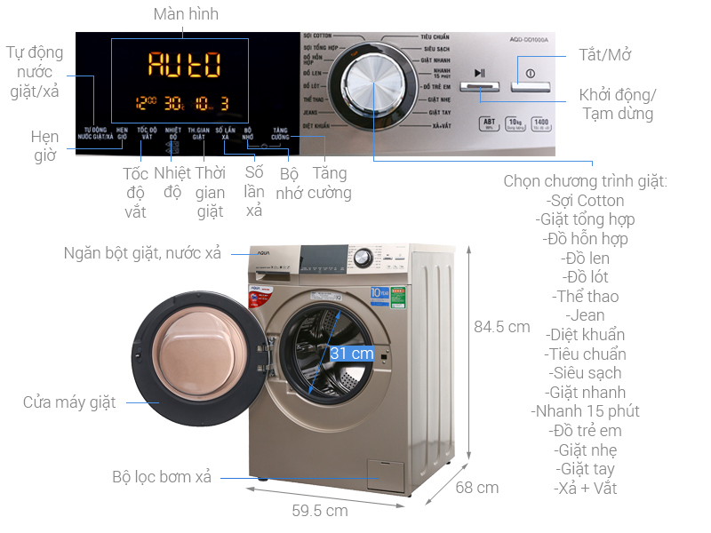 Đa số máy giặt trên thị trường hiện nay khi vận hành sẽ có độ ồn nhất định. Nhưng ở máy giặt Aqua inverter 10 kg AQD-DD1000A (N2) được thiết kế các lò xo giảm rung lắc bên trong, cố định lồng giặt rất tốt, tạo nên môi trường yên tĩnh, thoải mái cho người dùng.