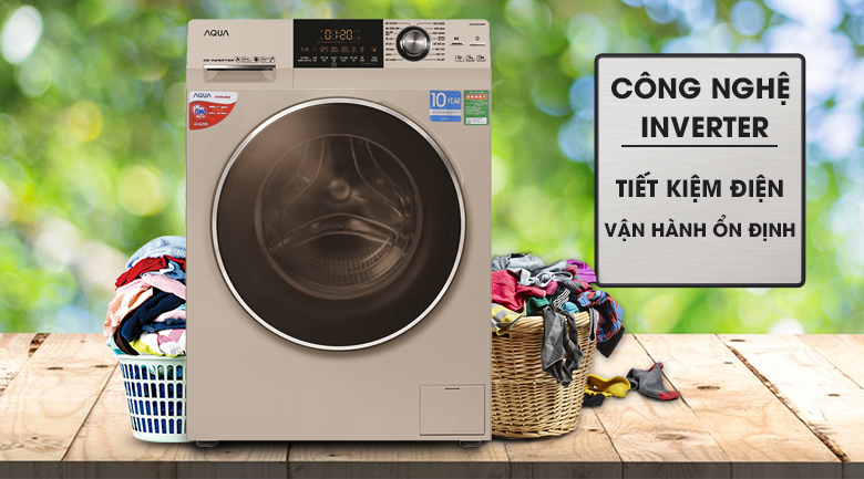 Với máy giặt này, người dùng sẽ không còn phải bận tâm quá nhiều về chi phí điện năng hằng tháng. Công nghệ Inverter được trang bị trên máy giặt Aqua có khả năng vận hành ổn định và tiết kiệm điện vượt trội. Động cơ hoạt động êm ái sẽ mang đến giấc ngủ ngon trọn vẹn cho bạn và gia đình khi giặt quần áo được vào buổi đêm