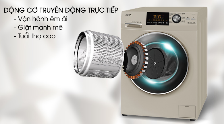 Động cơ hoạt động êm ái sẽ mang đến giấc ngủ ngon trọn vẹn cho bạn và gia đình khi giặt quần áo được vào buổi đêm. Với việc đặt động cơ trực tiếp dưới ngay dưới lồng giặt thì hiệu quả giặt, quay vắt cũng được nâng lên rất tốt.