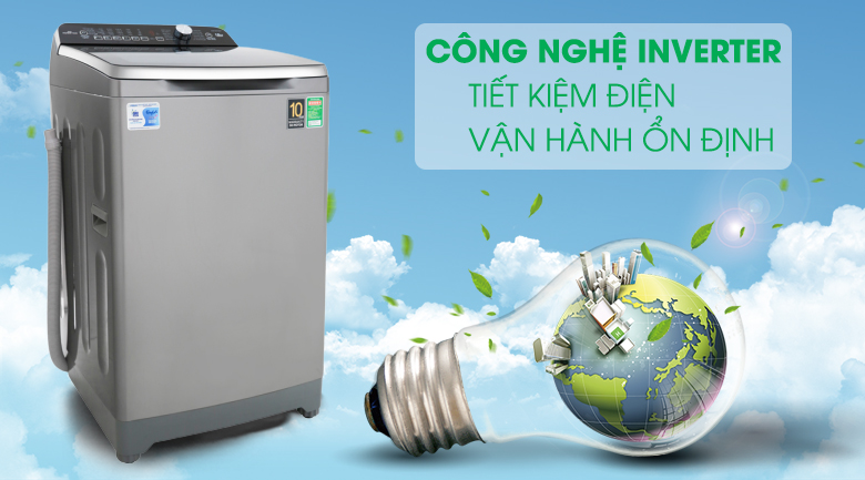 Được trang bị công nghệ Inverter, máy giặt Aqua AQW-DR100ET S sẽ mang đến khả năng vận hành êm ái, bền bỉ nhưng vẫn tiết kiệm hiệu quả điện, nước cho mỗi mẻ giặt.