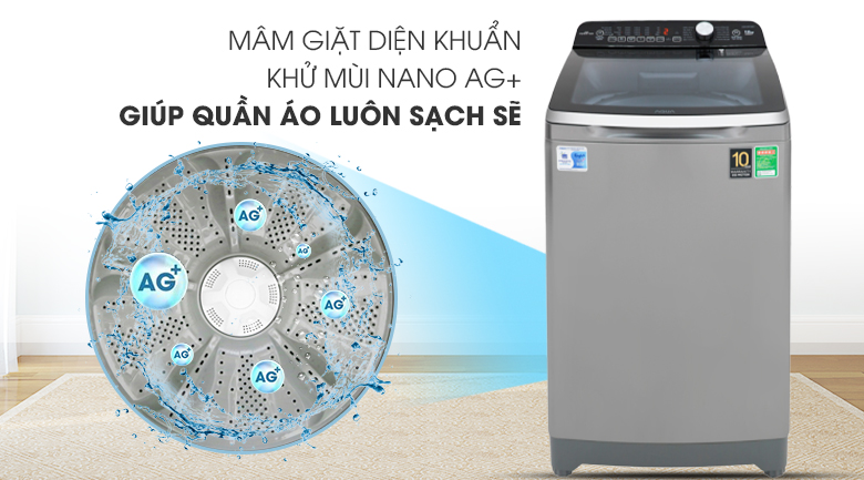 Ứng dụng công nghệ Nano Ag+ với hàng triệu tinh thể bạc có kích thước siêu nhỏ được sản sinh trong quá trình vận hành, máy giặt có thể loại bỏ được vi khuẩn, nấm mốc trong lồng giặt, cho quần áo được giặt sạch tốt hơn và không bị bám mùi hôi mốc.
