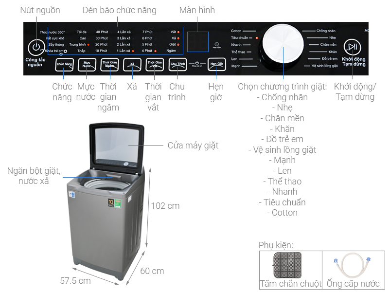Hơn nữa, máy giặt còn được trang bị bảng điều khiển nằm phía sau, giúp người dùng thuận tiện quan sát, cài đặt.