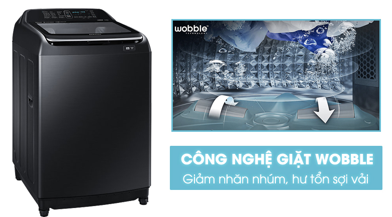 Mâm giặt Wobble xoay theo nhiều hướng khác nhau sẽ tạo ra luồng nước đa chiều để hòa tan và phân phối bột giặt đồng đều và đầy đủ đến từng đồ giặt. Không chỉ giúp quần áo được giặt sạch sẽ hơn, công nghệ này còn chăm sóc nhẹ nhàng đồ giặt và giảm xoắn rối hiệu quả.