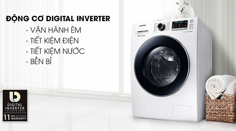Quên đi nỗi lo về hóa đơn tiền điện tăng mỗi tháng, máy giặt Samsung sử dụng công nghệ Digital Inverter tiên tiến hỗ trợ tiết kiệm điện năng từ 30 - 50%. Ngoài ra, với công nghệ này giúp động cơ máy giặt vận hành êm ái, tăng tuổi thọ cho máy.