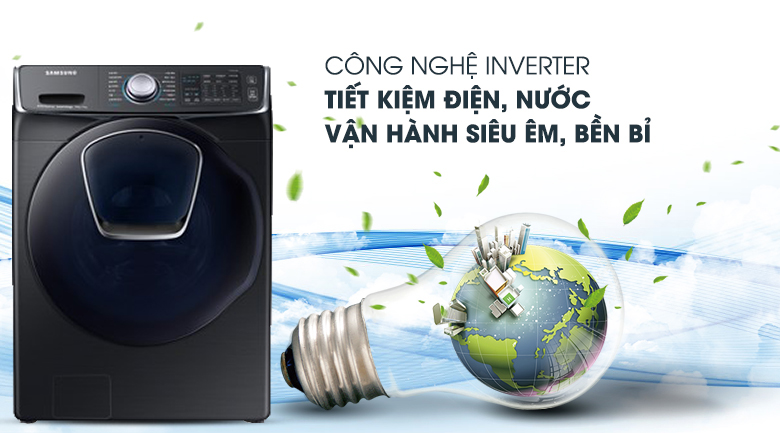 Được trang bị công nghệ Inverter nên trong quá trình vận hành, máy giặt Samsung không chỉ hoạt động êm ái, bền bỉ, không gây tiếng động ồn ào mà nó còn giúp tiết kiệm hiệu quả điện năng tiêu thụ, bạn sẽ không còn phải lo lắng về chi phí điện hàng tháng khi sử dụng máy giặtnhư trước nữa.