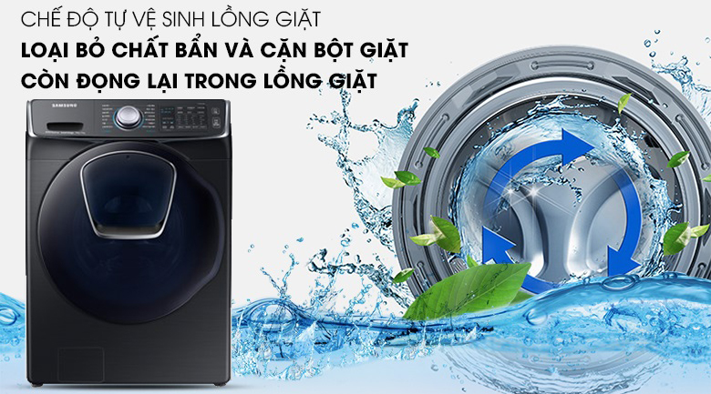 Một trong những ưu điểm của chiếc máy giặt sấy Samsung WD19N8750KV/SV đó chính là tính năng vệ sinh lồng giặt tự động. Nhờ có tính năng này, máy sẽ tự động làm sạch lồng giặt, loại bỏ cặn bẩn còn tồn đọng, cho lồng giặt luôn sạch sẽ, không bị bám mùi hôi khó chịu và bạn cũng không còn tốn nhiều thời gian hay chi phí để làm sạch máy giặt theo kiểu truyền thống nữa.
