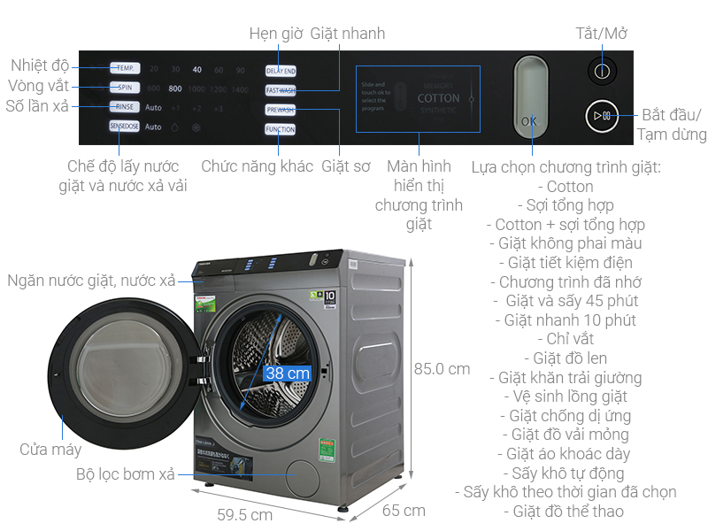 Một điều nổi bật ở chiếc máy giặt Toshiba này đó là được tích hợp thêm tính năng sấy. Chỉ trong vòng 45 phút, với 0.5 kg quần áo máy sẽ hoàn tất từ quá trình giặt cho đến quá trình sấy, nhanh chóng mang lại cho bạn những chiếc quần áo sạch sẽ, thơm tho và khô ráo, vô cùng tiện lợi khi bạn có những bộ quần áo bẩn nhưng cần sử dụng gấp.