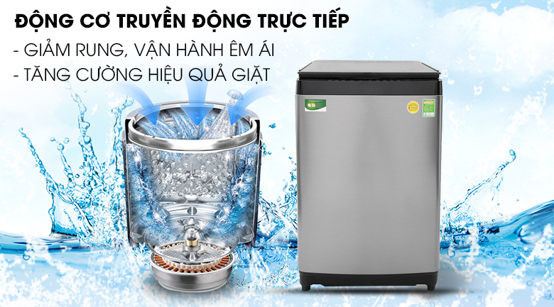 Được trang bị động cơ truyền động trực tiếp mềm và êm gắn trực tiếp vào lồng giặt, máy giặt Toshiba 15kg sẽ hạn chế tối đa rung lắc, gây tiếng động ồn ào, khó chịu ảnh hưởng đến sự tập trung hay giấc ngủ của các thành viên trong gia đình.