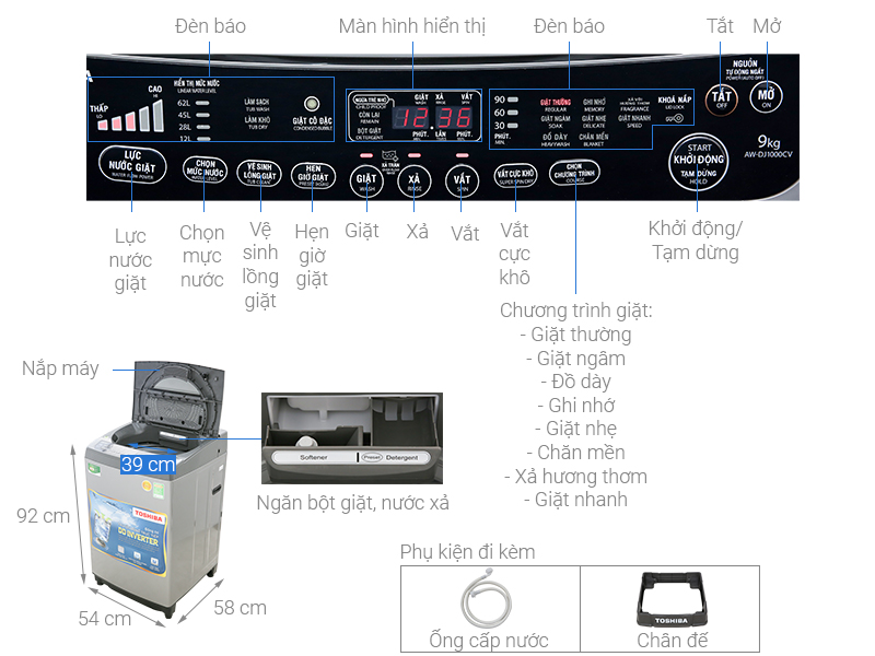 Máy giặt Toshiba Inverter 9 Kg AW-DJ1000CV SK với vỏ ngoài được làm từ kim loại bền bỉ, nâng cao vẻ đẹp sang trọng sản phẩm. Hơn nữa, máy còn có thiết kế bảng điều khiển hỗ trợ tiếng Việt hiện đại, giúp bạn dễ dàng hơn trong quá trình sử dụng.