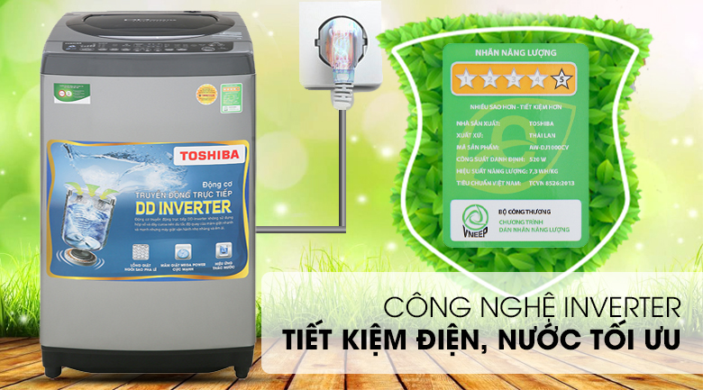 Được ứng dụng công nghệ Inverter, máy giặt Toshiba Inverter 9 Kg AW-DJ1000CV SK sẽ giúp gia đình bạn tiết kiệm đáng kể chi phí điện, nước hàng tháng trong quá trình sử dụng. Hơn nữa, công nghệ này còn đảm bảo cho máy giặt vận hành êm ái, bền bỉ .