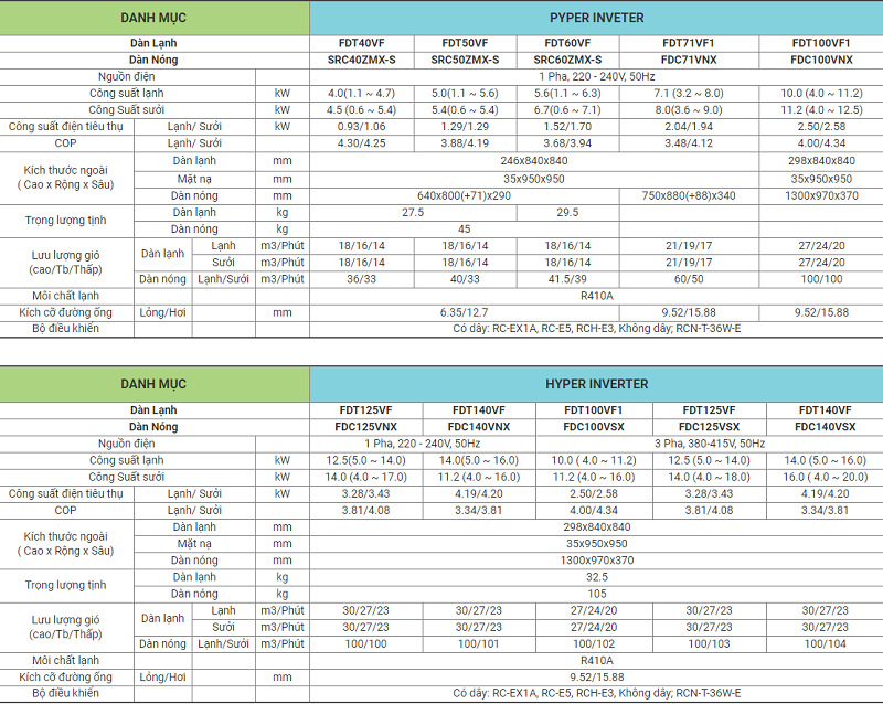 MÁY LẠNH ÂM TRẦN CASSETTE FDT-VF INVERTER - 4 HƯỚNG THỔI