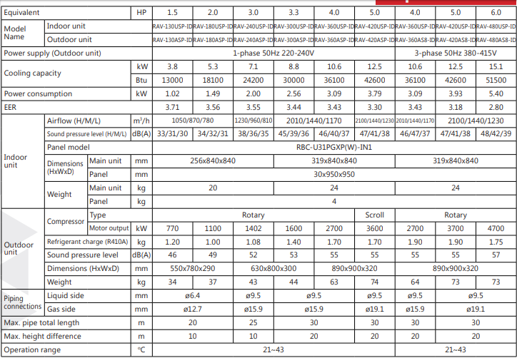 Thông số kỹ thuật : Máy lạnh âm trần Toshiba RAV-420USP công suất 4.0hp