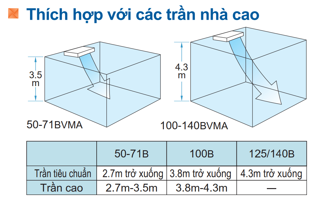 Máy lạnh áp trần Daikin  có chức năng đảo gió tự động (từ trên xuống và từ dưới lên) mang lại cảm giác thoải mái cho bạn. Miệng gió rộng giúp phân tán luồn gió với góc mở 100°. Ngoài ra cánh hướng gió có thể tạo hướng gió xuống với góc 50°.