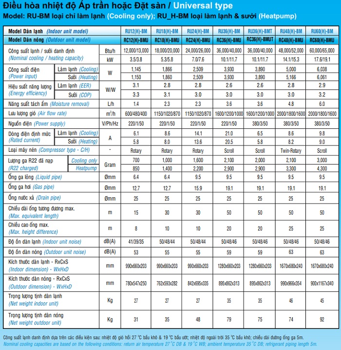Thông số kỹ thuật Áp trần Reetech RU