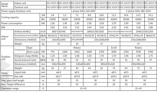 Thông số Máy lạnh áp trần Toshiba