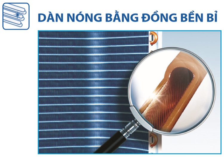 Máy được hoạt động mạnh mẽ với công suất làm lạnh 2.0HP (18.000Btu), có khả năng làm lạnh cho diện tích phòng dưới 30m2. Kết hợp với quạt Turbo giúp làm lạnh tức thời, nhanh chóng cho không gian phòng bạn. Hơn nữa, máy cấu tạo các ống làm bằng đồng cao cấp ở dàn nóng, có độ bền cao hơn các vật liệu thông thường khác.