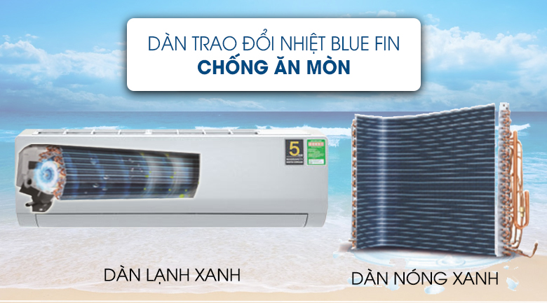 Nhờ có chất chống ăn mòn Blue Fin trên cả dòng nóng và dàn lạnh giúp nâng cao khả năng chịu đựng ăn mòn do muối hoặc bị hiện tượng oxy hóa gây ra, tăng cường tuổi thọ đặc biệt phù hợp ở những khu vực gần biển.
