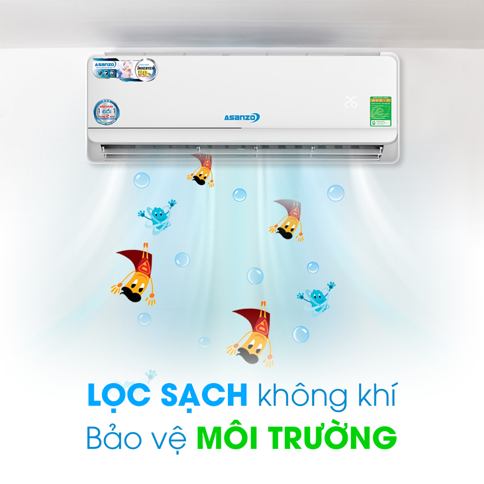 Máy lạnh Asanzo Inverter sử dụng chất liệu cao cấp, vỏ máy trơn láng rất dễ vệ sinh lau chùi. Chỉ cần lau dọn sạch bụi bẩn tích tụ trong bộ lọc là bạn đã có thể giảm đến 15% công suất hoạt động của máy, tiết kiệm không nhỏ điện năng sử dụng. Ngoài ra, để máy hoạt động hiệu quả và lâu bền, bạn nên định kỳ bảo trì 6 tháng/lần.