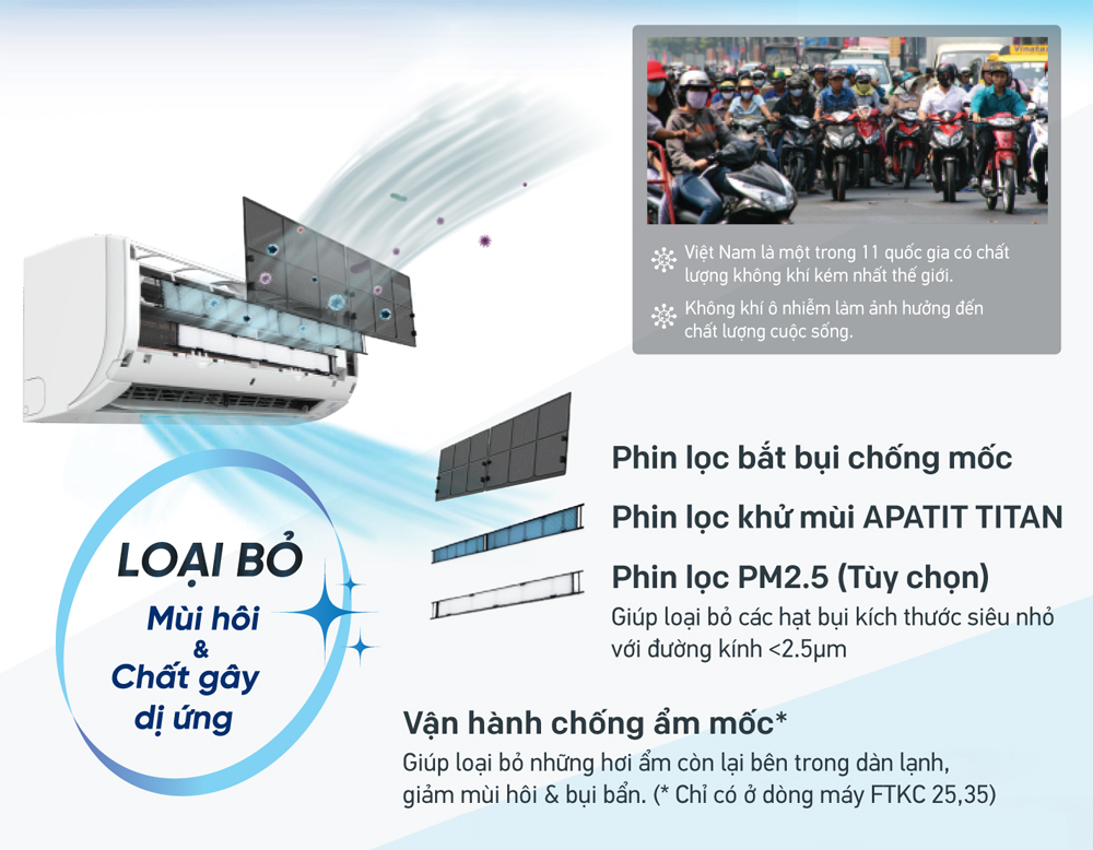 Khử ẩm, khử mùi, chống mốc, lọc bụi PM2.5 với phin lọc Apatit Titan