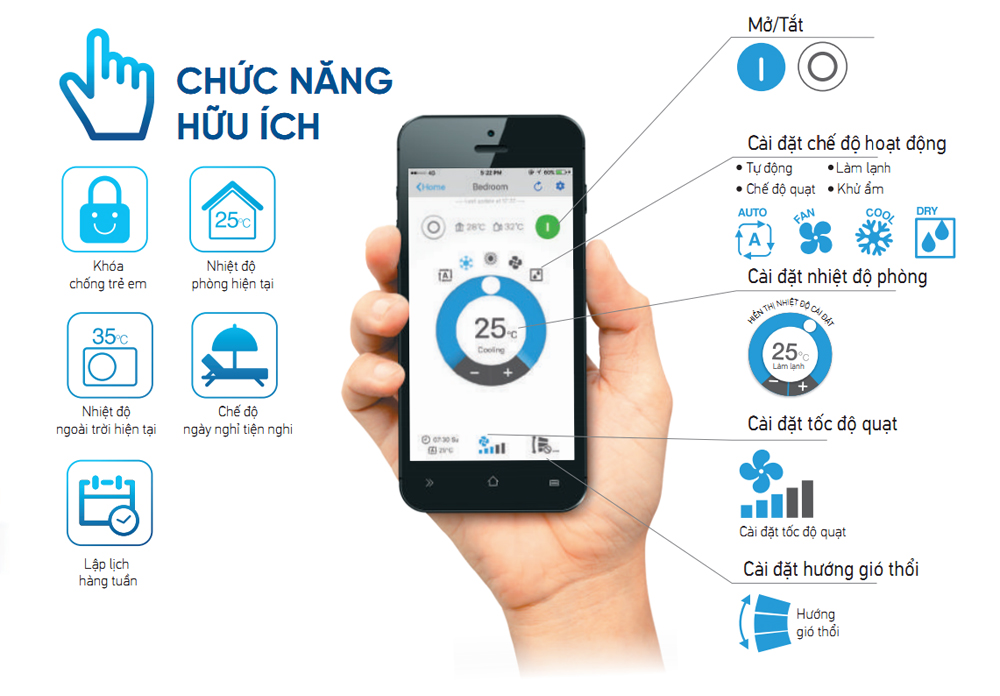 Với chức năng này bạn có thể tuỳ chỉnh nhiệt độ ở những thời điểm khác nhau mỗi ngày trong tuần